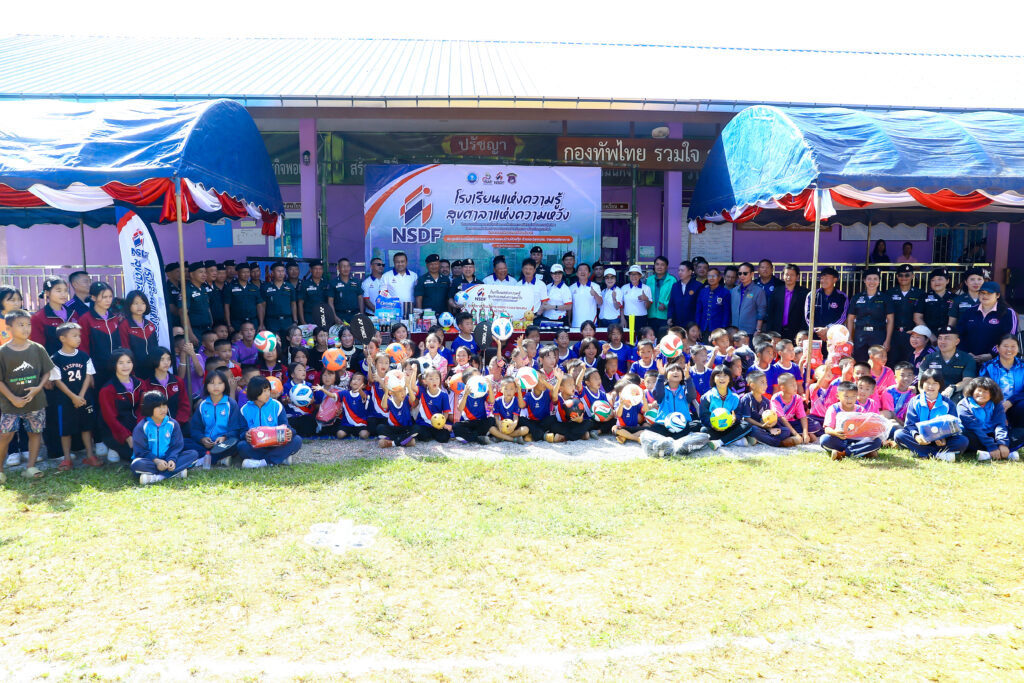 วันเสาร์ที่ 18 ตุลาคม 2568 ณ ศูนย์การเรียนตำรวจตระเวนชายแดนบ้านห้วยกุ๊ก อ.เวียงแก่น จ.เชียงราย กองทุนพัฒนาการกีฬาแห่งชาติ การกีฬาแห่งประเทศไทย ได้จัดโครงการสนับสนุนและเสริมสร้างการตื่นตัวและการมีส่วนร่วม ของการเล่นกีฬาและการออกกำลังกายของประชาชนผ่านกิจกรรมหรือบริการทางการกีฬาโดยมีพิธีมอบสนามกีฬา และไฟส่องสว่าง อุปกรณ์กีฬา อุปกรณ์การแพทย์ ภายใต้ชื่อ “โรงเรียนแห่งความรู้ สุขศาลาแห่งความหวัง“