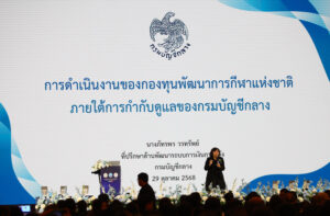 วันที่ 29 ตุลาคม 2568 นายอรรถกร ศิริลัทธยากร รัฐมนตรีว่าการกระทรวงการท่องเที่ยวและกีฬา เป็นประธานเปิดการสัมมนา “แนวทางการดำเนินงานและระบบคำขอกองทุนพัฒนาการกีฬาแห่งชาติ ครั้งที่ 2” พร้อมมอบ “4 วาระเร่งด่วน สู่ยุคใหม่ของกีฬาไทย” ให้กับสมาคมกีฬาที่ใช้คำว่า “แห่งประเทศไทย” สมาคมกีฬาแห่งจังหวัด และสำนักงานการกีฬาแห่งประเทศไทย (จังหวัด) ณ โรงแรมเดอะ แกรนด์ โฟร์วิงส์ คอนเวนชั่น กรุงเทพฯ (ศรีนครินทร์) ห้อง Pavilion A ชั้น 8