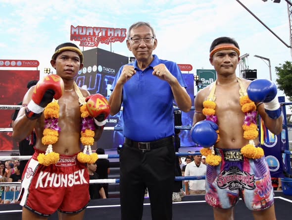 นายทนุเกียรติ จันทร์ชุม ผู้จัดการกองทุนพัฒนาการกีฬาแห่งชาติ พร้อมด้วยนายมนตรี หาญใจ คณะกรรมการบริหารกองทุนฯ ร่วมกิจกรรม “Muay Thai Phuket Festival 2025” วันสุดท้าย ซึ่งจัดขึ้นระหว่างวันที่ 15–17 สิงหาคม 2568 ณ บริเวณโรบินสัน ฉลอง จังหวัดภูเก็ต โดยมีการกีฬาแห่งประเทศไทย (กกท.) สำนักงานคณะกรรมการกีฬามวย คณะอนุกรรมการขับเคลื่อนอุตสาหกรรมกีฬา และจังหวัดภูเก็ตร่วมเป็นเจ้าภาพหลัก
