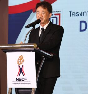 ด้านนายทนุเกียรติ จันทร์ชุม ผู้จัดการกองทุนพัฒนาการกีฬาแห่งชาติ กล่าวว่า “ก่อนอื่นผมขอเรียนถึงวัตถุประสงค์ของการจัดงานในวันนี้ ซึ่งสืบเนื่องจากนโยบายของรัฐบาลที่มอบหมายผ่านกระทรวงการท่องเที่ยวและกีฬา ให้หน่วยงานด้านกีฬาและสมาคมกีฬาต่าง ๆ ร่วมกันกำหนดแนวทางดำเนินงานเพื่อขับเคลื่อนการพัฒนากีฬาให้บรรลุเป้าหมายอย่างเป็นรูปธรรม การนำนโยบายไปสู่การปฏิบัติจำเป็นต้องอาศัยทั้งเวลา ความร่วมมือ และงบประมาณ กองทุนพัฒนาการกีฬาแห่งชาติได้หารือร่วมกัน และคณะกรรมการบริหารกองทุนได้เห็นชอบให้การสนับสนุนโครงการนี้อย่างต่อเนื่อง โดยปีนี้เป็นปีที่ 2 ของการดำเนินงาน แม้งบประมาณที่ใช้จะเป็นสัดส่วนเพียงเล็กน้อยเมื่อเทียบกับภาพรวม แต่ผู้ได้รับประโยชน์ครอบคลุมเยาวชน นักกีฬา และบุคลากรกีฬาจำนวนมาก รวมถึงระบบนิเวศกีฬาโดยรวม ความมุ่งหวังของโครงการ คือ การสร้างรากฐานที่แข็งแรงให้วงการกีฬาไทย พัฒนานักกีฬา บุคลากร และระบบการแข่งขัน เพื่อให้เกิดผลสัมฤทธิ์ในระยะยาว ทั้งในระดับทีมชาติ เวทีมหกรรมกีฬา อาทิ ซีเกมส์ เอเชียนเกมส์ และโอลิมปิกเกมส์ ตลอดจนการเปิดโอกาสสู่อาชีพนักกีฬา สร้างชื่อเสียงและความภาคภูมิใจแก่ครอบครัวและประเทศชาติ ผมเชื่อมั่นว่า ด้วยความร่วมมือของทุกภาคส่วน เป้าหมายที่เราวางไว้ร่วมกันจะบรรลุผลสำเร็จตามที่คณะกรรมการบริหารกองทุนคาดหวัง”
