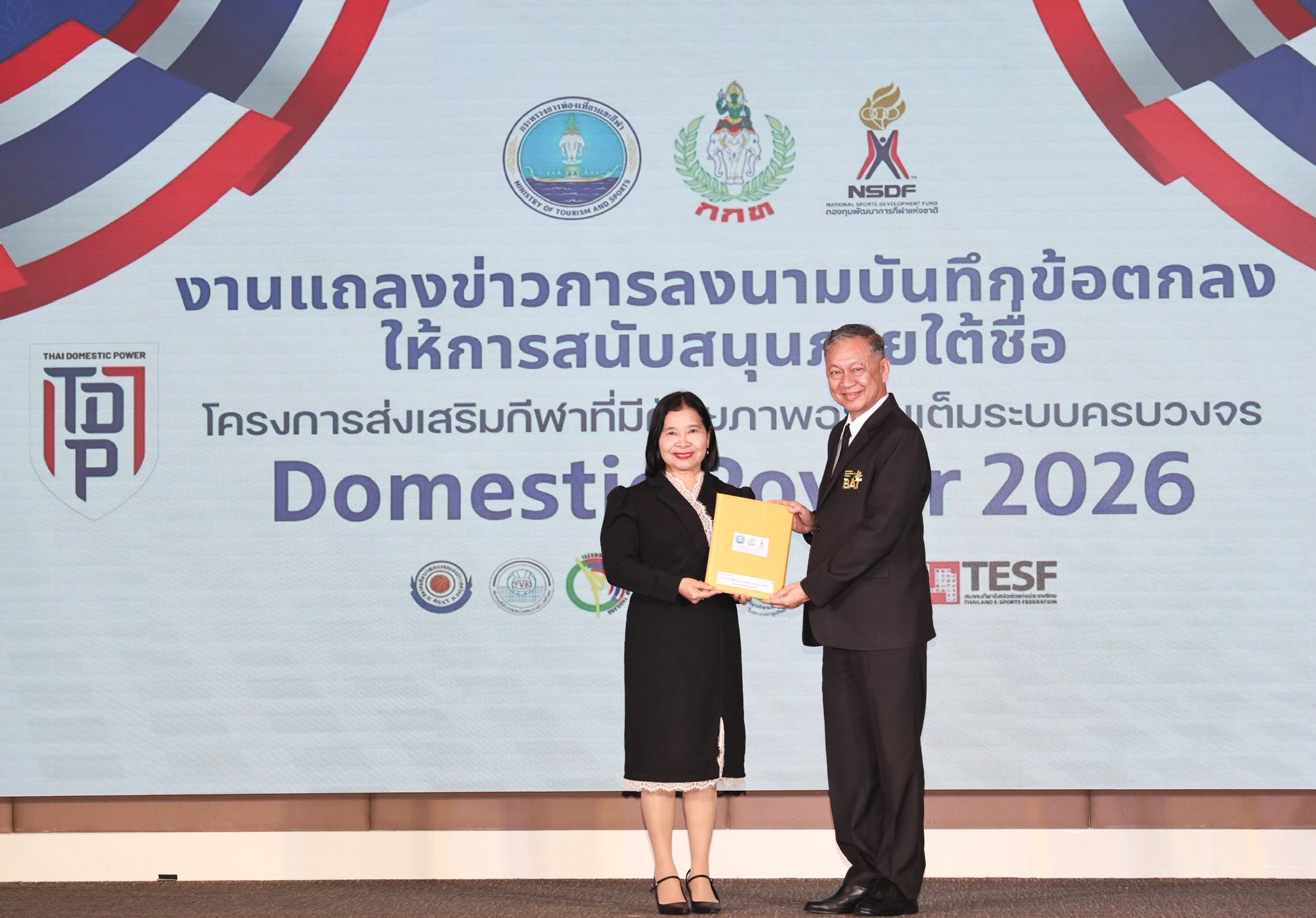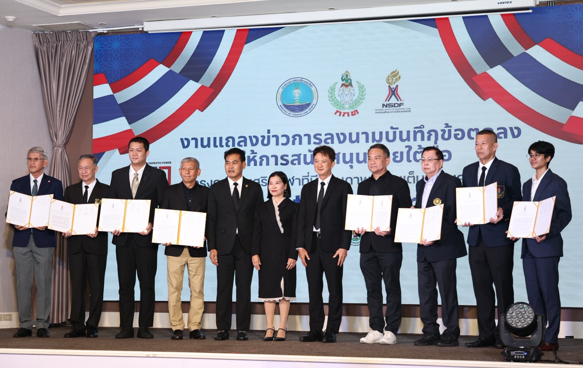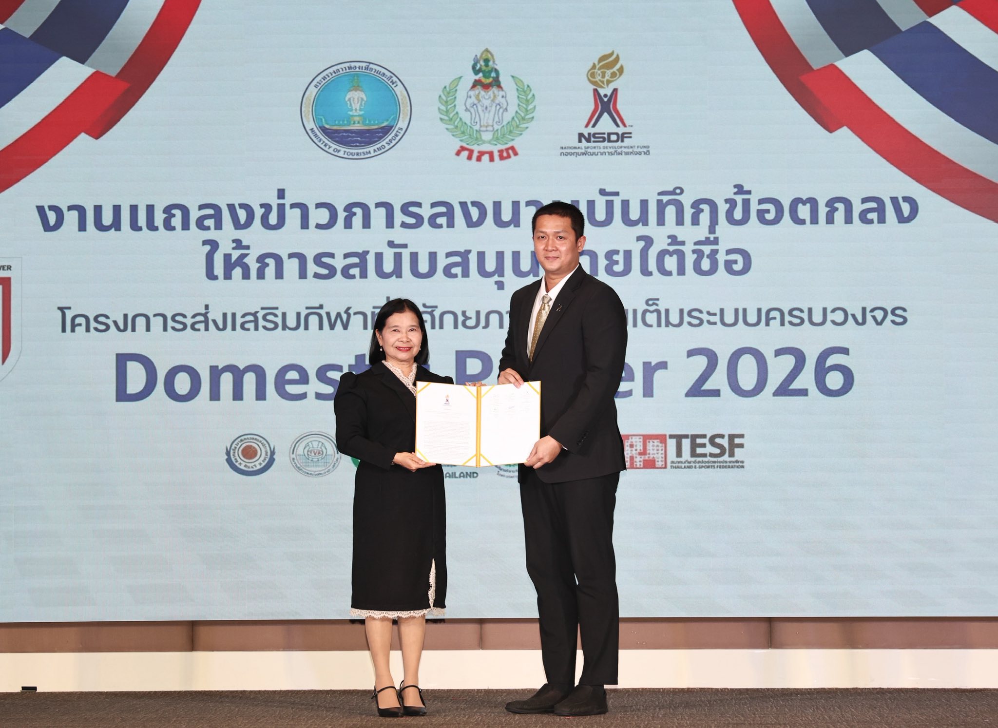 กองทุนพัฒนาการกีฬาแห่งชาติ จัดแถลงข่าวลงนามบันทึกข้อตกลง ให้การสนับสนุนภายใต้ชื่อ “โครงการส่งเสริมกีฬาที่มีศักยภาพอย่างเต็มระบบครบวงจร Domestic Power 2026”