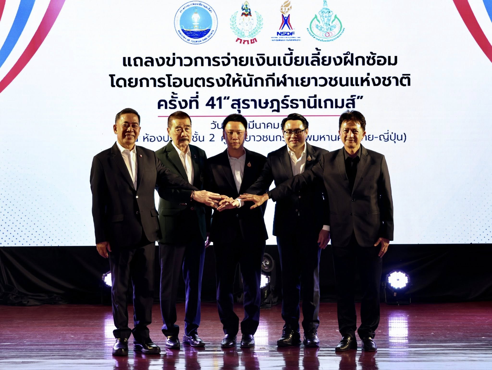 นายอรรถกร ศิริลัทธยากร รัฐมนตรีกระทรวงการท่องเที่ยวและกีฬา เป็นประธานการแถลงข่าวโดยการจ่ายเบี้ยเลี้ยงฝึกซ้อมโดยการโอนตรงให้นักกีฬาเยาวชนแห่งชาติครั้งที่ 41 “สุราษฎร์ธานีเกมส์” ระหว่างวันที่ 7-17 พฤษฎาคม 2569 เป็นรายการแรกที่่จะโอนเบี้ยเลี้ยงฝึกซ้อมตรงให้กับนักกีฬา