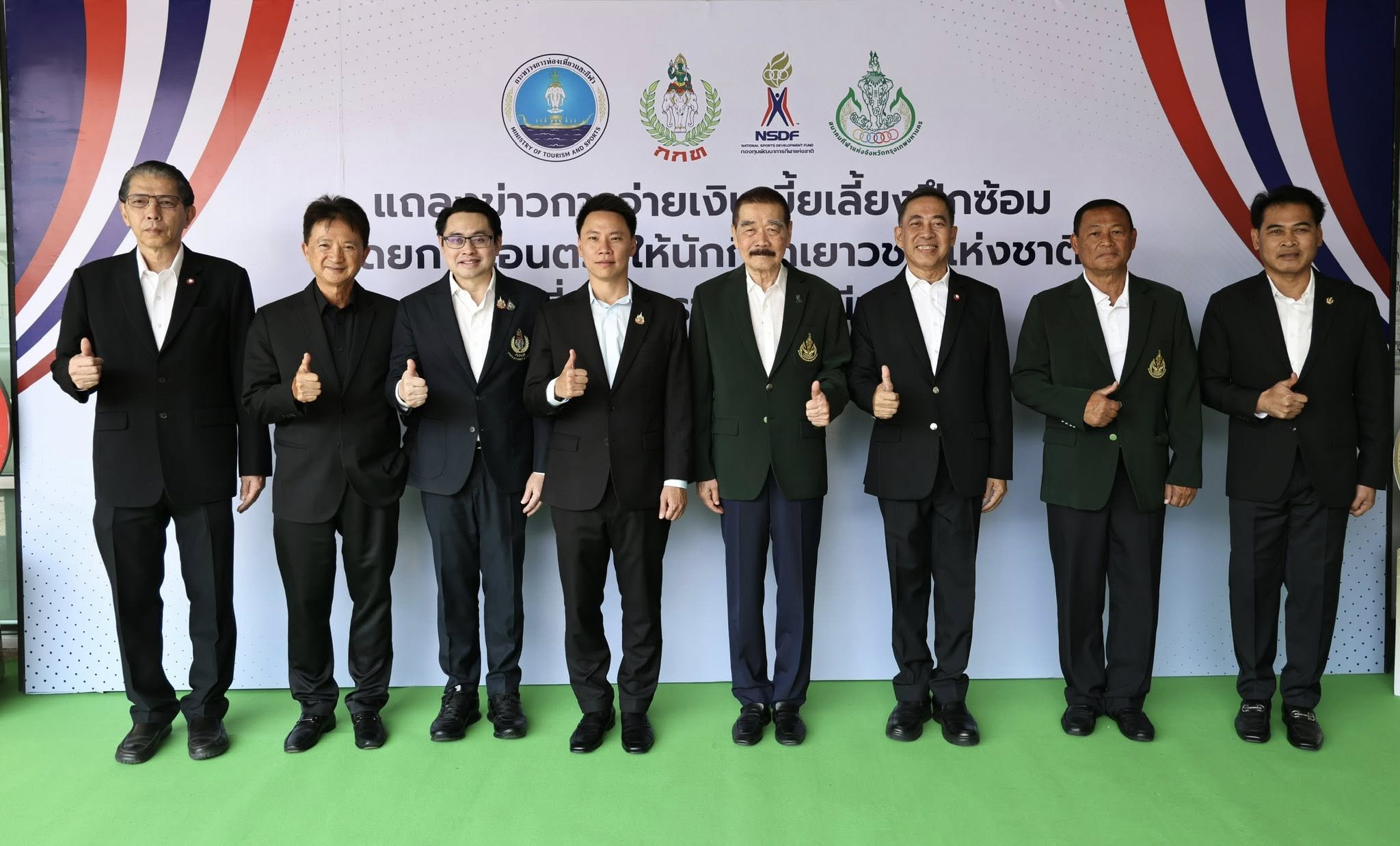 รองผู้ว่าการการกีฬาแห่งประเทศไทย ฝ่ายส่งเสริมกีฬา,นายทนุเกียรติ จันทร์ชุม ผู้จัดการกองทุนพัฒนาการกีฬาแห่งชาติ,นายสมหมาย ลักขณานุรักษ์ ที่ปรึกษาด้านงบประมาณกองทุนฯ,นายประวิทย์ เมตตา ผู้อำนวยการฝ่ายการคลังกองทุน, นายเกื้อ ชูศรี ผู้อำนวยการฝ่ายกีฬาภูมิภาค ,นายนรินทร์ จารุจำรัส ผู้ช่วยกรรมการผู้จัดการใหญ่ ผู้บริหารกลุ่ม กลุ่มธุรกิจภาครัฐ 2 สายงานธุรกิจภาครัฐ ธนาคารกรุงไทย และนายธีรจิตต์ พืชมงคล