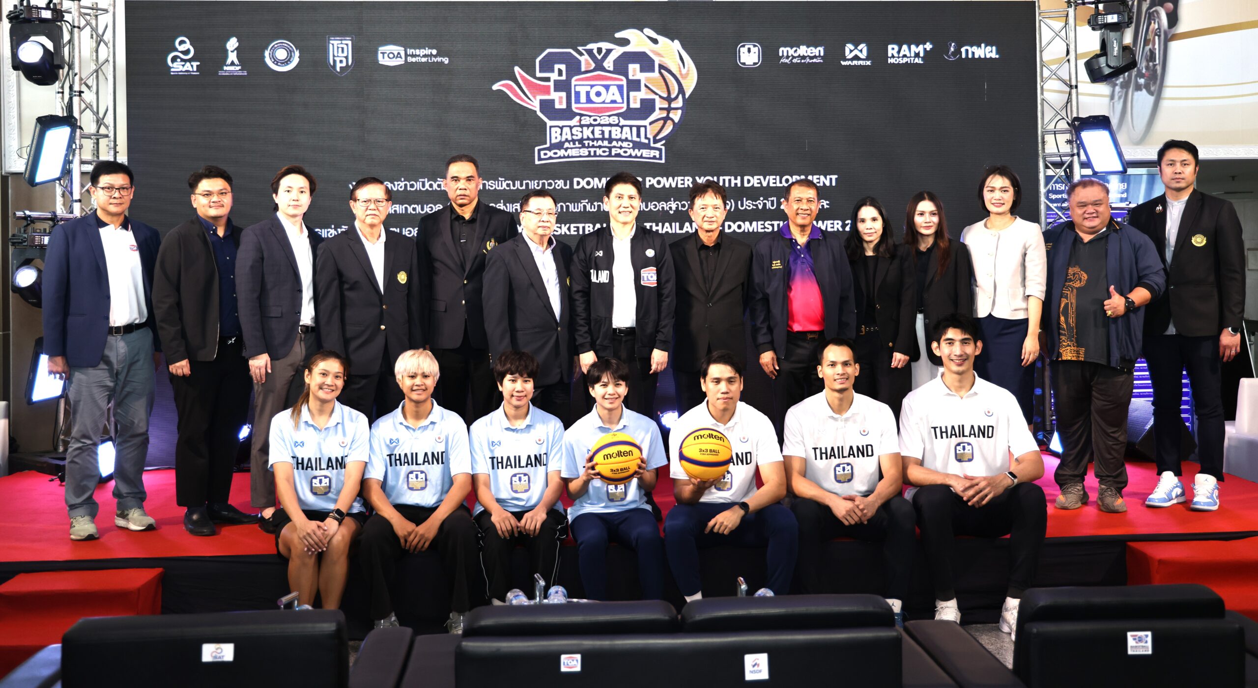 เมื่อวันที่ 24 มีนาคม 2569 ณ โถงชั้น 1 อาคารเฉลิมพระเกียรติ 7 รอบ พระชนมพรรษา การกีฬาแห่งประเทศไทย สมาคมกีฬาบาสเกตบอลแห่งประเทศไทย จัดงานแถลงข่าวโครงการ Domestic Power โครงการส่งเสริมกีฬาที่มีศักยภาพอย่างเต็มระบบครบวงจร ชนิดกีฬาบาสเกตบอล ประจำปี 2569 (ส่งเสริมศักยภาพกีฬาบาสเกตบอลสู่ความสำเร็จ) และการแข่งขันรายการ “TOA 3X3 Basketball All Thailand – Domestic Power 2026”