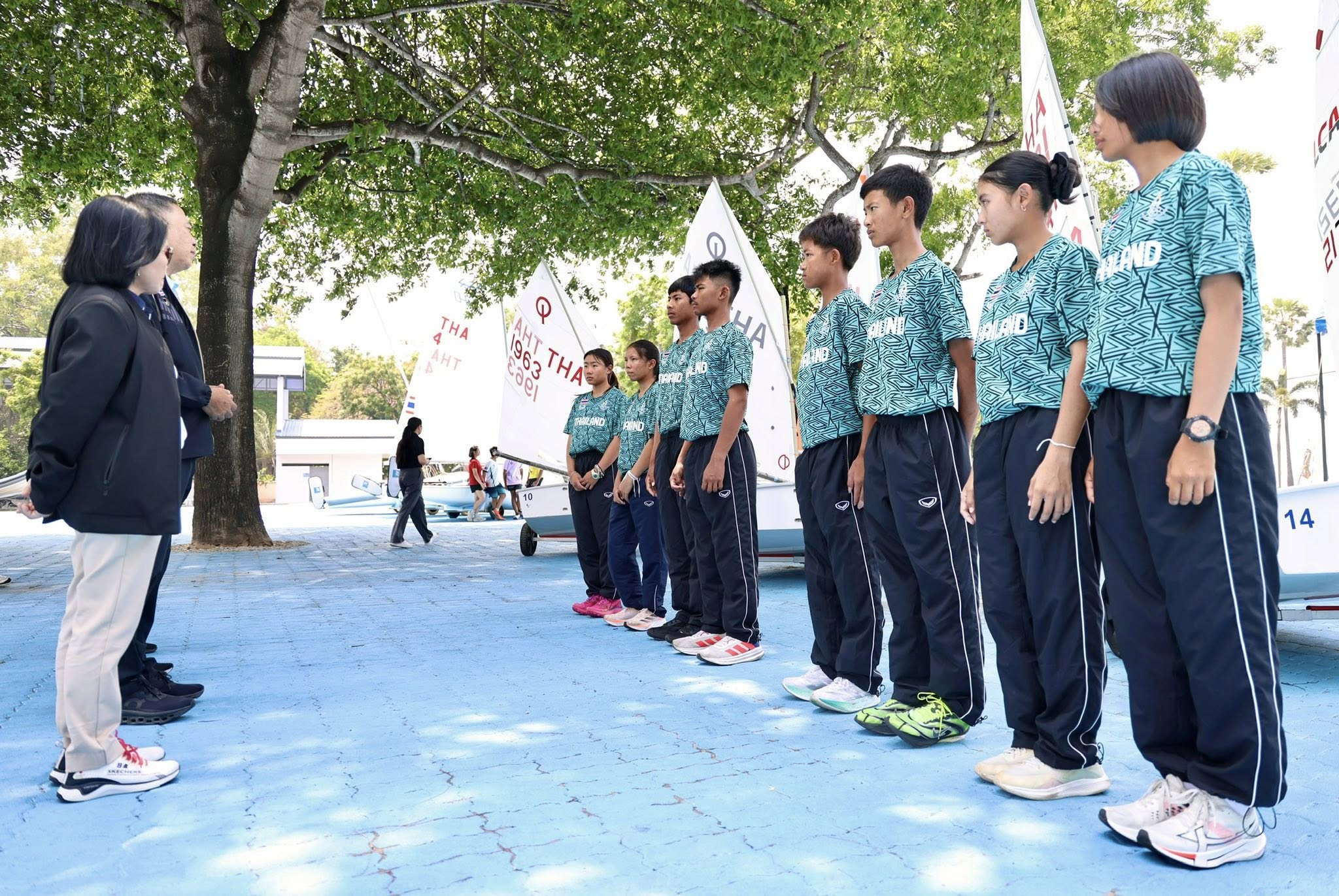 ในการนี้ พลเรือตรี สุบรร ดีนอก ผู้ช่วยผู้อำนวยการศูนย์สมุทรกีฬา สมาคมกีฬาแข่งเรือใบแห่งประเทศไทยฯ พร้อมด้วยคณะทำงาน ผู้ฝึกสอน และนักกีฬา ให้การต้อนรับอย่างอบอุ่น